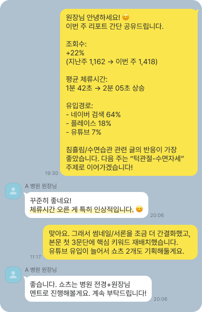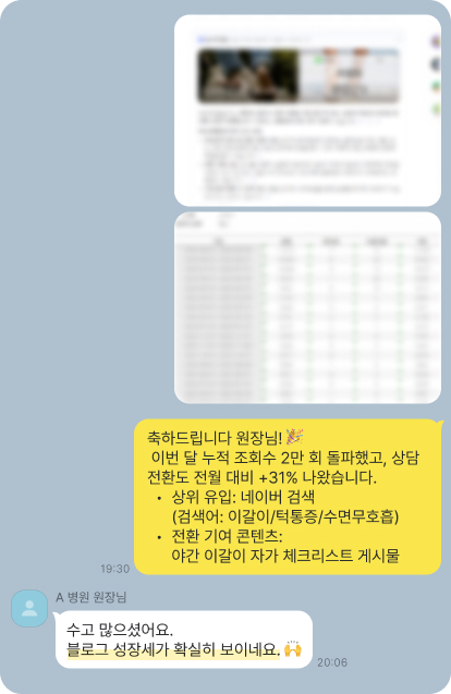 그 글 하나하나가 실제로 환자 예약으로 이어진 적이 있나요?