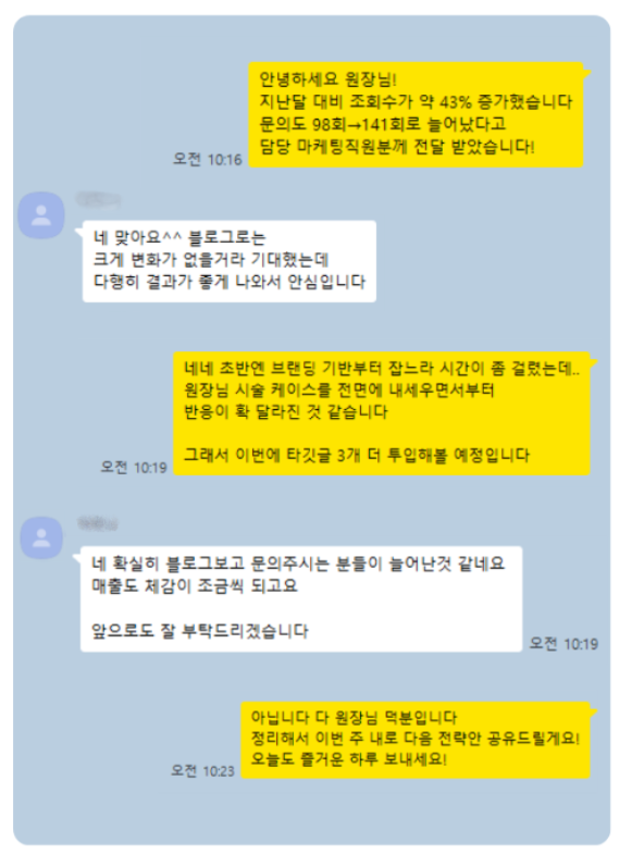 👇 원장님과 나눈 실제 카톡 중 일부를 재구성하였습니다.