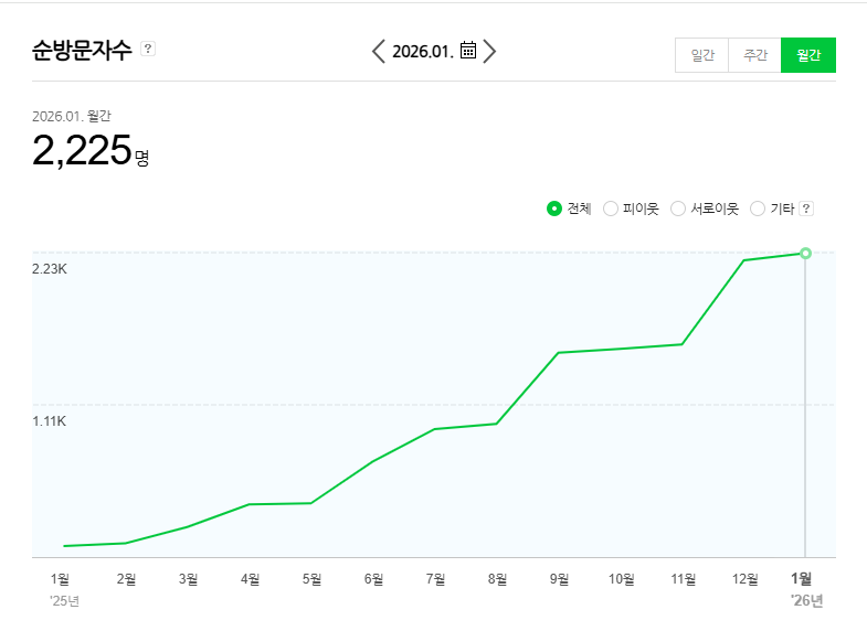 • 지속적인 검색 유입이 발생하는 블로그 구조를 구축한 것이 가장 큰 성과였습니다.