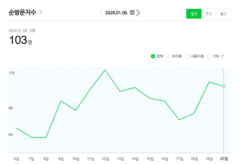 • 일 방문자 : 약 15명 → 100명 이상 증가